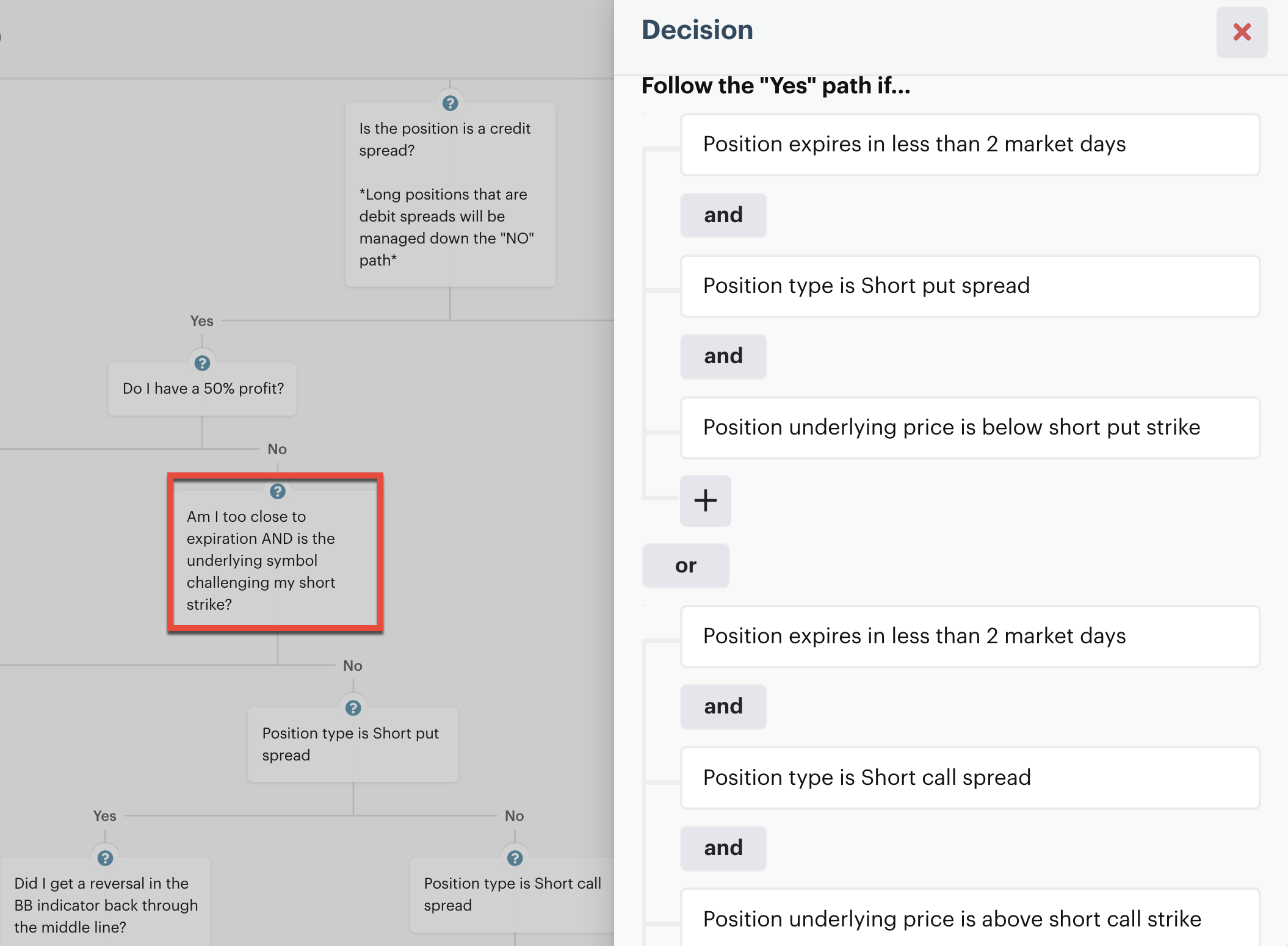 First, the bot determines if the position is a short credit spread or a long debit spread. Remember, this depends on whether or not you’ve turned the switch “on” or “off.”