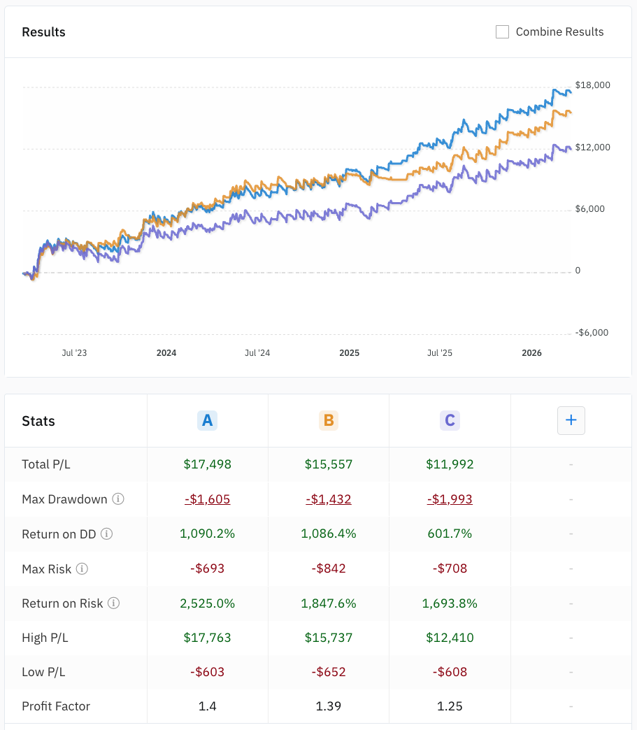 The backtest for the strategy is promising. I kept it as minimal as possible to avoid overfitting. It also holds the positions until expiration so it's not getting favorable exits. The returns were 10x the max drawdown with the baseline setup over the last 3 years.