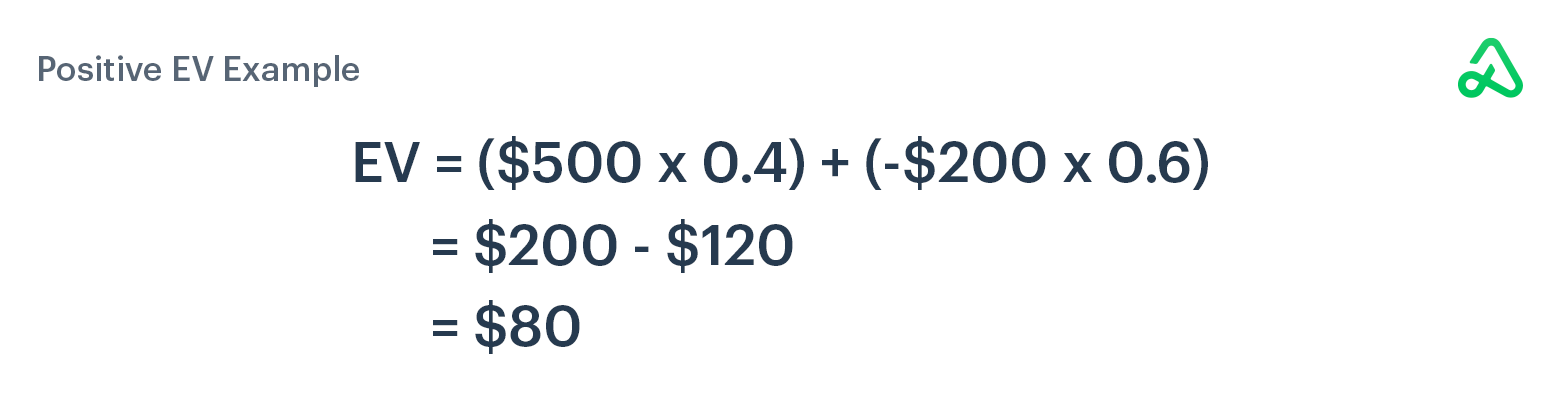 The expected value is not always positive, however. More often than not, EV for betting games is negative when thereās a lower percentage chance of winning a lot of money and a higher percentage chance of losing a little money, e.g., playing the lottery.