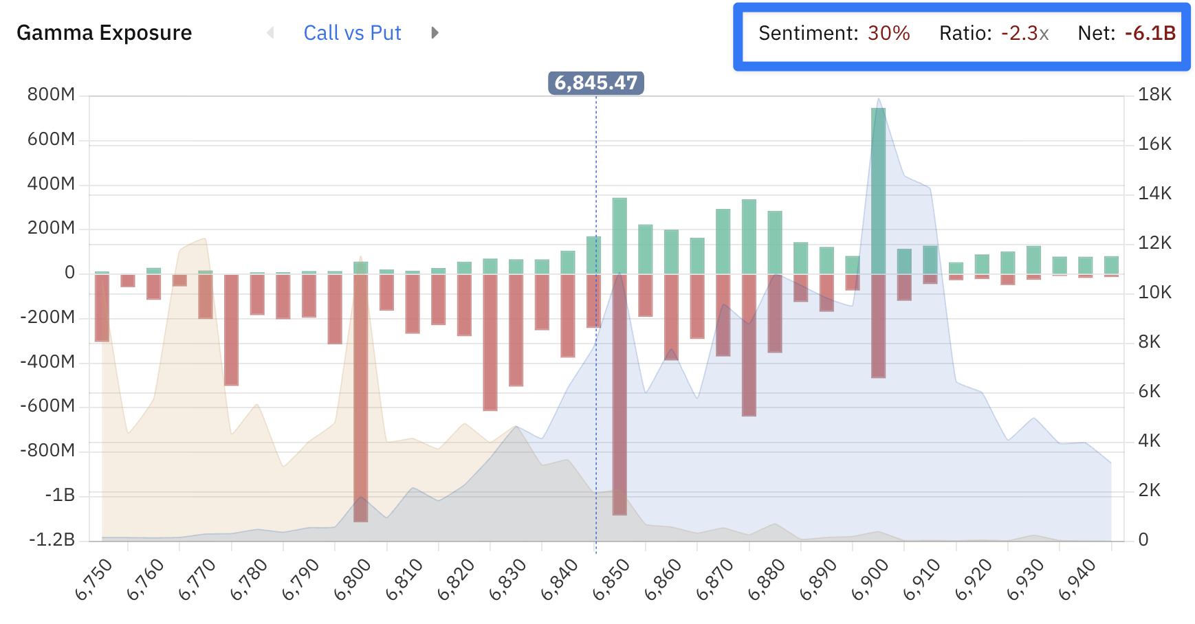 GEX sentiment is the % of bars nearest to the current price that are positive.